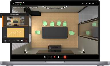 Поддерживает конференции до 150–200 участников, демонстрацию презентаций, использование интерактивной доски, общих заметок, опросов и текстового чата. Устанавливается на собственном сервере организации; подключение осуществляется через браузер без необходимости установки дополнительного ПО.